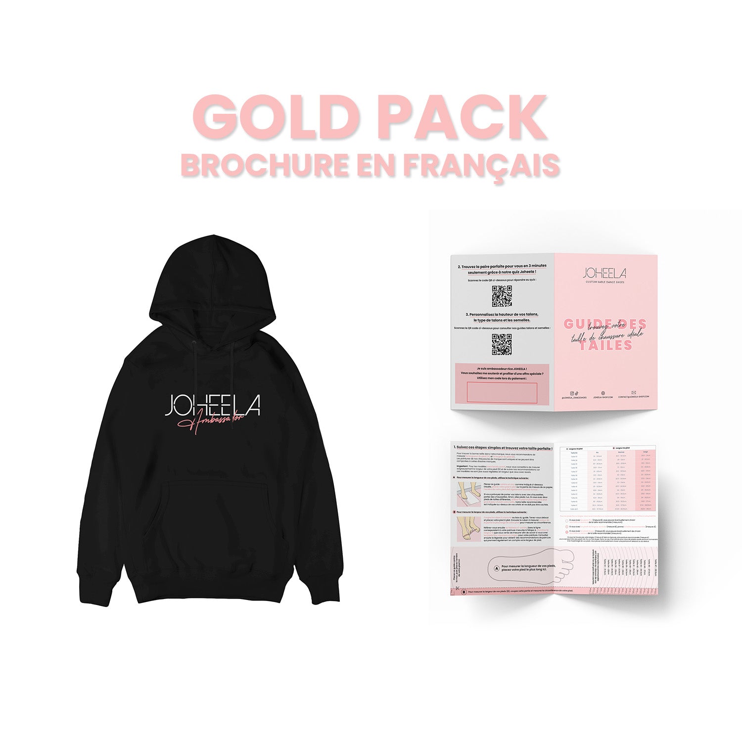 - 100 Broschüren Größenführer + ein T-Shirt und ein Hoodie Botschafter JOHEELA