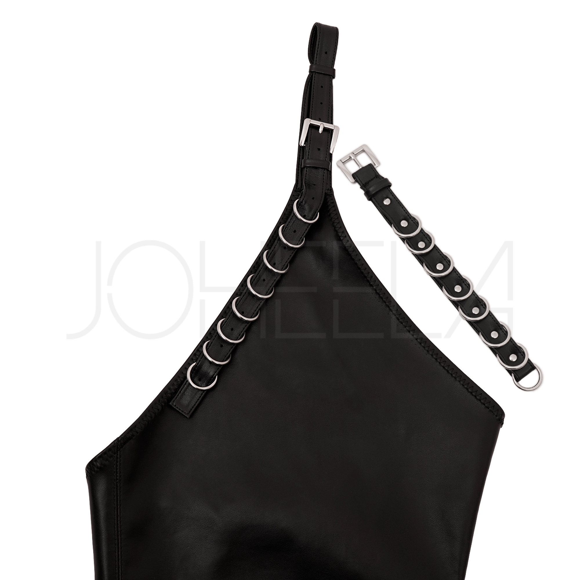 Attached to a belt with an adjustable strap and adorned with metal rings, it exudes a feline energy: assertive , feminine, and... untamable.