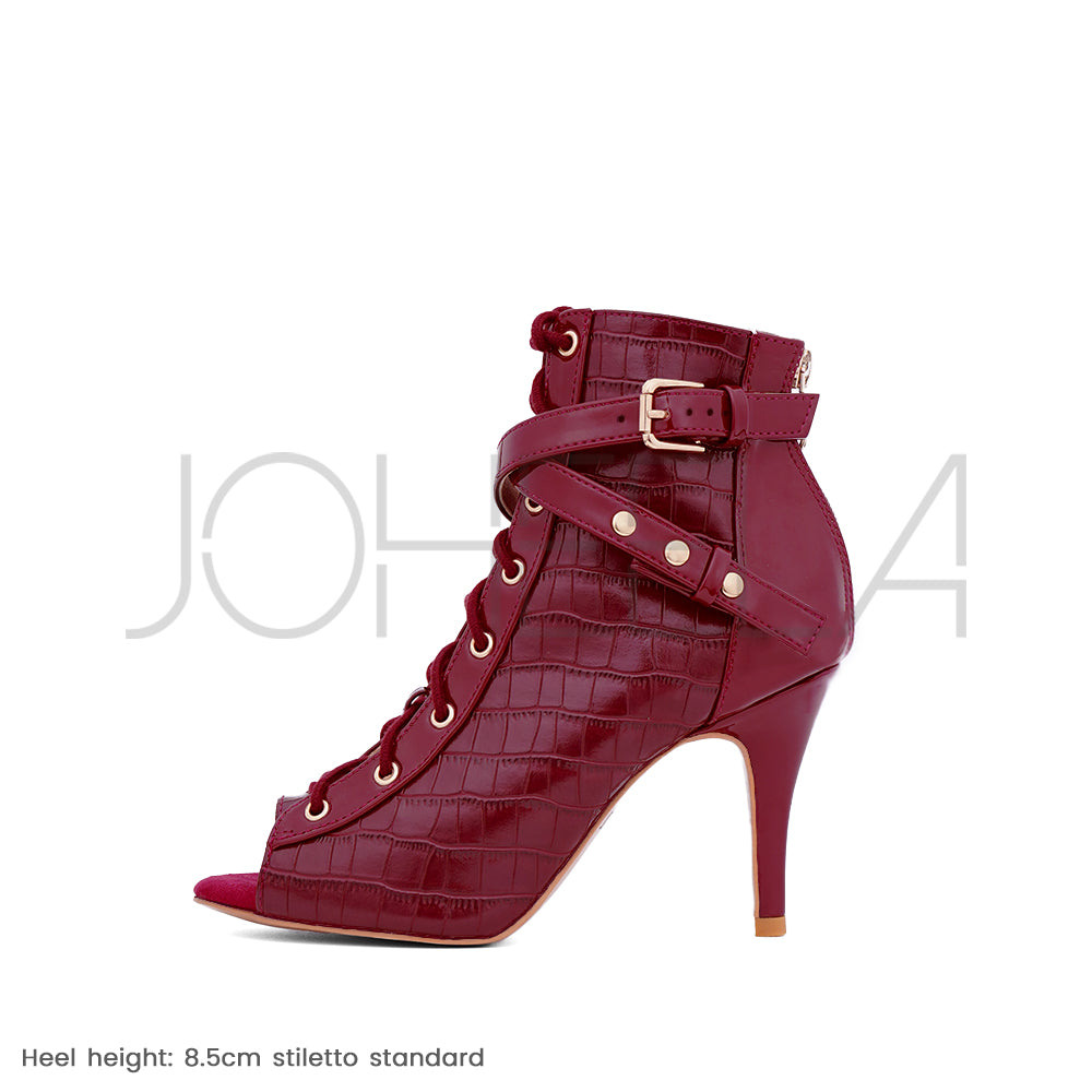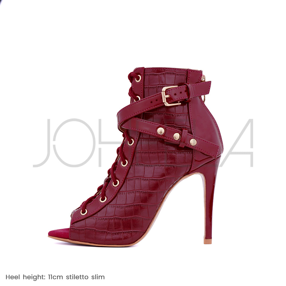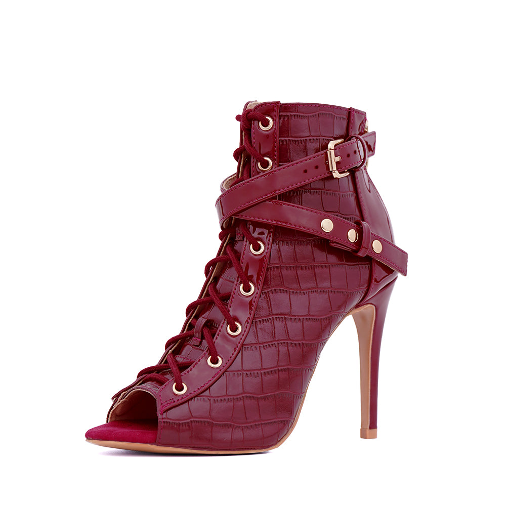 Déjate seducir por Audrey Bordeaux, un modelo irresistible y sensual. El efecto cocodrilo, combinado con el cuero vegano charol, aporta contraste y personalidad a tus movimientos, mientras que los detalles dorados aportan ese toque de estilo que marca la diferencia. Con Audrey Bordeaux, tus movimientos ganan en riqueza e intensidad, para bailar con temperamento.