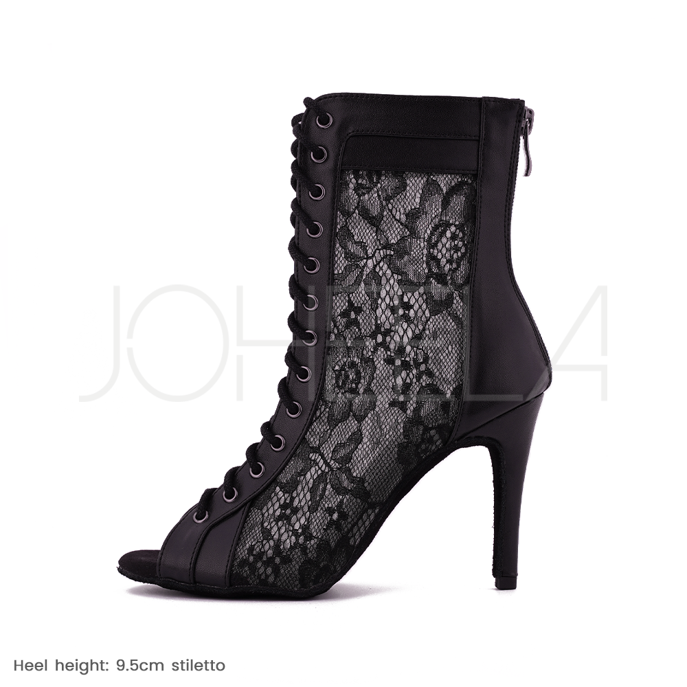 ¡Sucumba al encanto de Valentina! Déjese seducir por la sensualidad de este botín con cordones, que combina la delicadeza del encaje con el encanto de la piel vegana para un look sexy y atractivo. Velando su piel con un encaje sensual y emocionante, Valentina será su baza de encanto para expresar su feminidad y bailar con deseo y pasión.