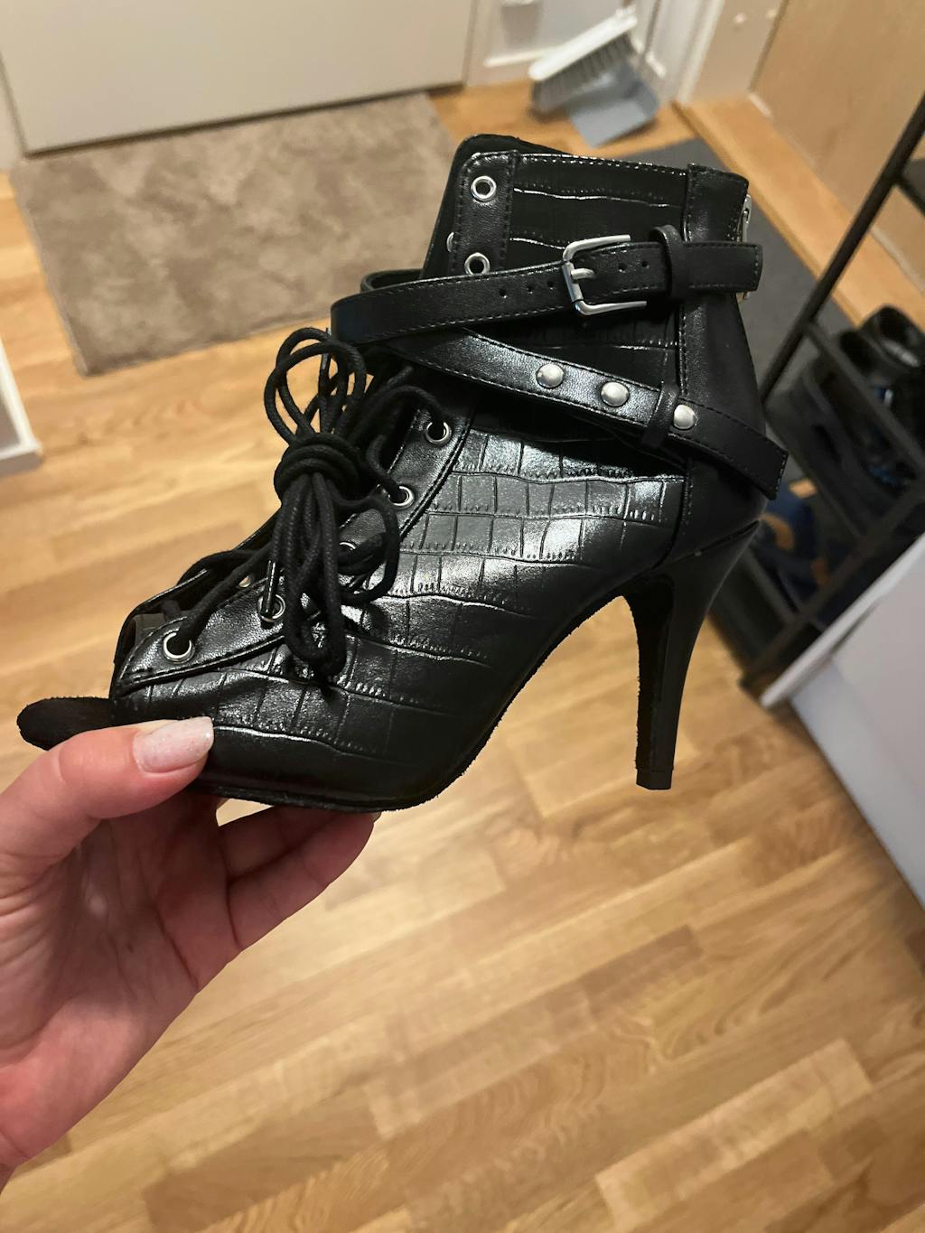 - Utilisation : Cette paire n'est pas recommandée pour du floorwork car la matière effet croco est sensible aux frottements et s'abimera plus rapidement avec des passages au sol.