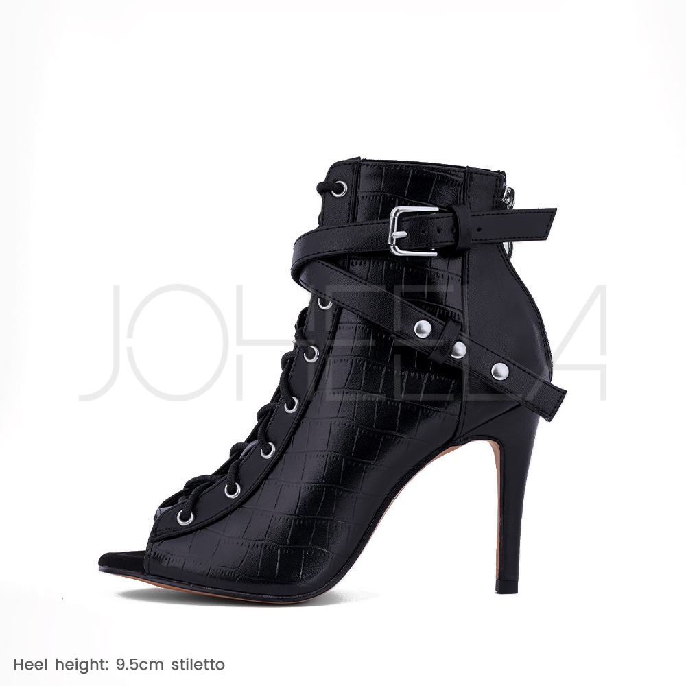 Laissez-vous séduire par le style audacieux d'Audrey et son incontournable cuir vegan effet croco. Ses 2 sangles ajustables croisées apportent une touche de modernité tout en offrant un maintien supplémentaire à la cheville. Audrey imprègne chacun de vos mouvements d'un caractère audacieux et sauvage, vous procurant la confiance et le style indispensables pour danser avec assurance.
