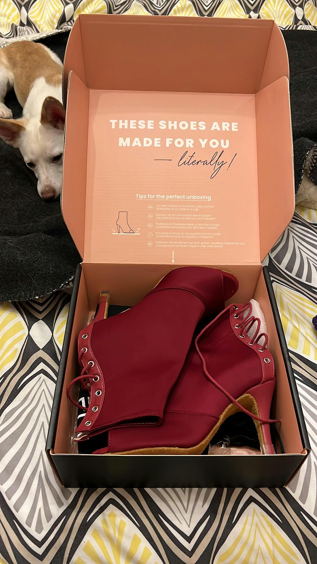 Les chaussures Joheela sont imaginées et dessinées à Paris par Mathilde, la créatrice de la marque. Ils sont fabriquées à la commande avec les options de personnalisation choisies (talon, type de semelle) dans une usine renommée et spécialisée dans la fabrication des chaussures de danse, dans la région de Shenzhen en Chine. Vos commandes sont ensuite expédiés directement depuis l'usine après fabrication pour une livraison plus rapide. Cliquez ici pour en savoir plus sur notre processus de fabrication.